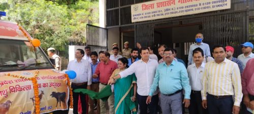 प्रदेश आकस्मिक पशु चिकित्सा सेवाओं को टोल फ्री न0- 1962 के माध्यम से पशुपालकों के द्वार पर उपलब्ध कराने के उद्देश्य से भारत सरकार की महत्त्वाकांक्षी योजना ईएस वीएचडी ESVHD के अन्तर्गत मोबाईल वेटेनरी यूनिट (एम0वी0यू0) का शुभारम्भ/फ्लैग ऑफ मुख्यमंत्री द्वारा लखनऊ पर किये जाने के उपरांत ही जनपद स्तर पर विकास भवन गाजियाबाद परिसर से गाजियाबाद की 02 एमवीयू का शुभारम्भ,फ्लैग ऑफ जिला पंचायत अध्यक्ष ममता त्यागी द्वारा किया गया। जनपद में उक्त सेवा पूर्व निर्धारित रूट,शैडयूल रूट पर 08 बजे से 02 बजे अपरान्ह तक एवं इमरजेन्सी रूट पर प्रातः 10 बजे से शाम 08 बजे तक उपलब्ध होगी। शाम 08 बजे के बाद प्राप्त हुई पशुपालकों की कॉल, कॉल सेन्टर पर रिकार्ड की जायेगी। जिनके सापेक्ष सेवाऐं आगामी दिवस पर उपलब्ध करायी जायेगी। जनपद स्तर पर तैयार किये गये शैडयूल रूट में आवश्यकतानुसार परिर्वतन किया जा सकेगा।