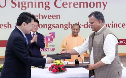 कोरिया गणराज्य (दक्षिण कोरिया) के ग्योंगसांगबुक-डो प्रांत के राज्यपाल ली चेओलवू के नेतृत्व में एक उच्चस्तरीय प्रतिनिधिमंडल एमओयू पर हस्ताक्षर करने के लिए उत्तर प्रदेश पहुंच। इस दौरान मुख्यमंत्री योगी आदित्यनाथ की उपस्थिति में एमओयू हस्ताक्षर समारोह आयोजित किया गया। उत्तर प्रदेश सरकार की ओर से अवस्थापना एवं औद्योगिक विकास आयुक्त, मनोज कुमार सिंह तथा ग्योंगसांगबुक-डो प्रांत के महानिदेशक, ब्यूरो आॅफ इकोनॉमिक एंड इंडस्ट्रियल अफेयर, ली यंगसेओक द्वारा एमओयू पर हस्ताक्षर किए गए।
