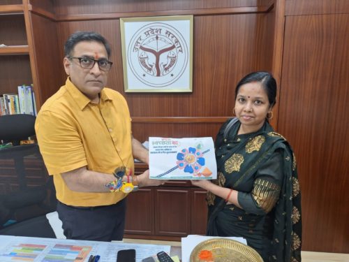 लखनऊ। ‘बंधन स्वच्छता का’ संकल्प के साथ प्रमुख सचिव नगर विकास अमृत अभिजात और निदेशक नगरीय निकाय डॉ. नितिन बंसल निष्प्रयोज्य सामानों से बनी राखी बंधवाकर स्वच्छता का सन्देश दिया। रिसाइकिल मैटेरियल से बनी राखी को स्वयं सहायता समूह की महिलाओं और महिला सफाई मित्रों द्वारा स्वच्छता हीरोज को भी बंधा गया। यह सभी राखियाँ शिक्षण संस्थाओं में छात्रों और अभिभावकों को स्वच्छता के प्रति जागरूक करने के लिए चलाये जा रहे स्वच्छ पाठशाल अभियान के दौरान बनायी गयीं हैं।