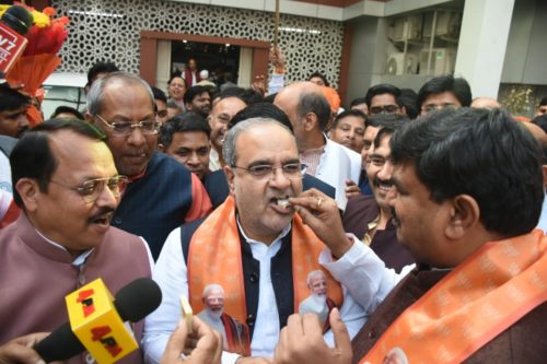 लखनऊ। मध्यप्रदेश, राजस्थान, छत्तीसगढ़ विधानसभा चुनाव में भारतीय जनता पार्टी को मिली प्रचंड जीत से उत्साहित भाजपा कार्यकतार्ओं ने रविवार को पार्टी के राज्य मुख्यालय पर जीत का जश्न मनाया। पार्टी के प्रदेश अध्यक्ष भूपेन्द्र सिंह चौधरी व प्रदेश महामंत्री (संगठन) धर्मपाल सिंह की मौजूदगी में पार्टी कार्यकतार्ओं ने एक-दूसरे को मिठाई खिलाकर जीत की बधाई दी और जमकर आतिशबाजी कर ढोल-नगाडों की थाप पर गगन भेदी नारों के साथ जीत का जश्न मनाया। इस अवसर पर पार्टी के प्रदेश महामंत्री गोविन्द नारायण शुक्ला, अनूप गुप्ता, राम प्रताप सिंह, सुभाष यदुवंश, प्रदेश मंत्री अमित बाल्मीकि, मीना चौबे, शंकर लोधी, शिवभूषण सिंह, प्रदेश मीडिया प्रभारी मनीष दीक्षित, कार्यालय प्रभारी भारत दीक्षित, कार्यालय सहप्रभारी लक्ष्मण सिंह, अतुल अवस्थी, महानगर अध्यक्ष आनन्द द्विवेदी सहित बड़ी संख्या में पार्टी पदाधिकारी, जनप्रतिनिधि और कार्यकर्ता मौजूद रहे।