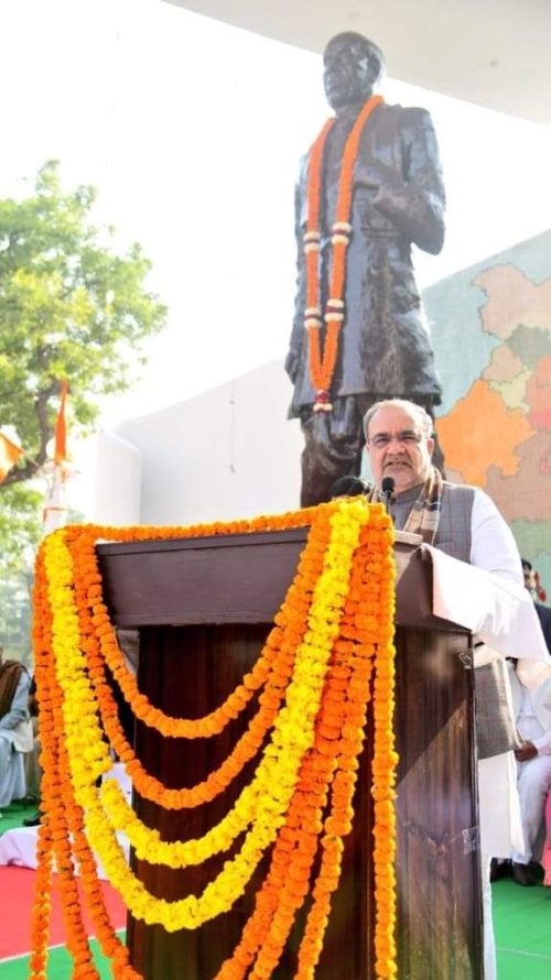 भाजपा प्रदेश अध्यक्ष भूपेन्द्र सिंह चौधरी ने जीपीओ परिसर स्थित सरदार वल्लभ भाई पटेल की प्रतिमा पर पुष्पार्चन करते हुए कहा कि देश के वर्तमान स्वरूप को गढ़ने में सरदार वल्लभ भाई पटेल की बड़ी भूमिका है। उन्होंने कहा कि आधुनिक भारत के शिल्पकार, राष्ट्रीय एकता और अंखडता के प्रणेता सरदार वल्लभ भाई पटेल ने अपनी दृढ़ इच्छा शक्ति से 565 से अधिक देशी रियासतों का भारत में विलय करके एक भारत-श्रेष्ठ भारत की नीव रखी। भारत की एकता और अखंडता का जो संकल्प सरदार वल्लभ भाई पटेल ने लिया, उस संकल्प को साध्य मानकर प्रधानमंत्री नरेन्द्र मोदी कार्य कर रहे है। उन्होंने कहा कि प्रधानमंत्री नरेन्द्र मोदी ने कश्मीर में लागू संविधान के अनुच्छेद 370 को समाप्त करके देश की शक्ति से विश्व को परिचित कराया है और लौह पुरूष के स्वप्न को साकार करने की दिशा में मजबूती से आगे बढ़ रहे है। भारतीय जनता पार्टी श्रद्धेय सरदार वल्लभ भाई के द्वारा प्रशस्त मार्ग के अनुसरण के लिए प्रतिबद्ध है।