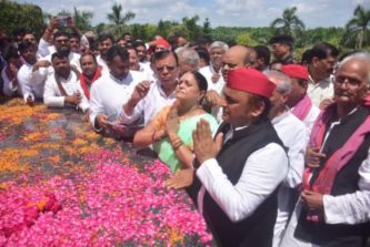 लखनऊ। समाजवादी पार्टी के राष्ट्रीय अध्यक्ष एवं पूर्व मुख्यमंत्री अखिलेश यादव के निर्देश पर समाजवादी चिंतक पूर्व केन्द्रीय मंत्री जनेश्वर मिश्र की जयंती सोमवार को प्रदेशभर में समाजवादी पार्टी के कार्यालयों में सादगी से मनाई गई। राजधानी लखनऊ में जनेश्वर मिश्र पार्क गोमतीनगर में अखिलेश यादव ने उनकी आदम कद प्रतिमा पर पुष्पांजलि अर्पित की।