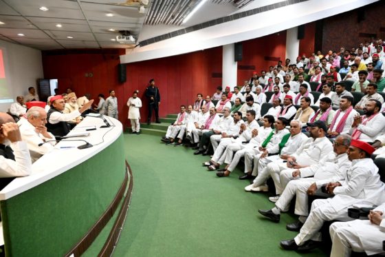 लखनऊ। समाजवादी पार्टी के प्रदेश मुख्यालय 19 विक्रमादित्य मार्ग लखनऊ में डॉ0 राममनोहर लोहिया सभागार में विभिन्न राज्यों से आये पार्टी पदाधिकारियों एवं नेताओं को सम्बोधित करते हुए समाजवादी पार्टी के राष्ट्रीय अध्यक्ष एवं पूर्व मुख्यमंत्री अखिलेश यादव ने कहा कि भाजपा सरकार में गरीबों के साथ अन्याय, अत्याचार की पराकाष्ठा हो गयी है। सत्ता के संरक्षण में दबंग और अपराधी गरीबों पर कहर ढा रहे हैं। गरीबों की हाय भाजपा सरकार को डुबो देगी।