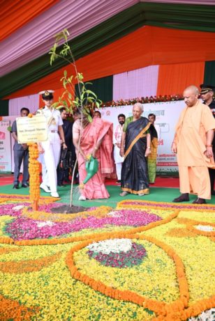 लखनऊ। देश की प्रथम नागरिक महामहिम राष्ट्रपति द्रौपदी मुर्मू ने पहली से सात जुलाई तक चलने वाले ‘वन महोत्सव-2025’ का सोमवार को शुभारंभ किया। उन्होंने महायोगी गुरु गोरखनाथ आयुष विश्वविद्यालय के लोकार्पण समारोह में ‘एक पेड़ मां के नाम’ अभियान के तहत रुद्राक्ष का पौधा लगाया। राष्ट्रपति ने पौधों के संरक्षण पर भी जोर दिया।