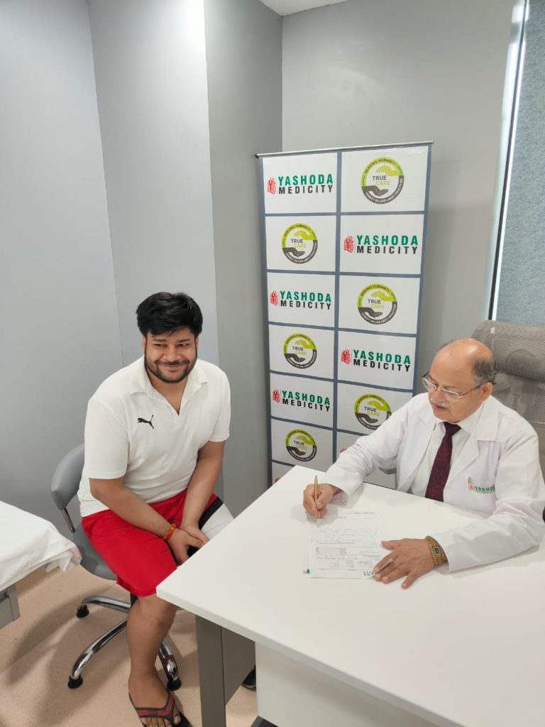 इस दौरान शिविर में एक खास आकर्षण उस समय बना, जब मुंबई से प्रसिद्ध फिल्म अभिनेता राजेश खट्टर यशोदा मेडिसिटी पहुंचे। बैक पेन (पीठ दर्द) की शिकायत को लेकर पहुंचे राजेश खट्टर ने डॉक्टर नीरज जैन से परामर्श लिया। डॉक्टर ने उन्हें दवाइयों के साथ-साथ सावधानी बरतने और फिजियोथेरेपी जैसी नियमित देखरेख की सलाह दी।