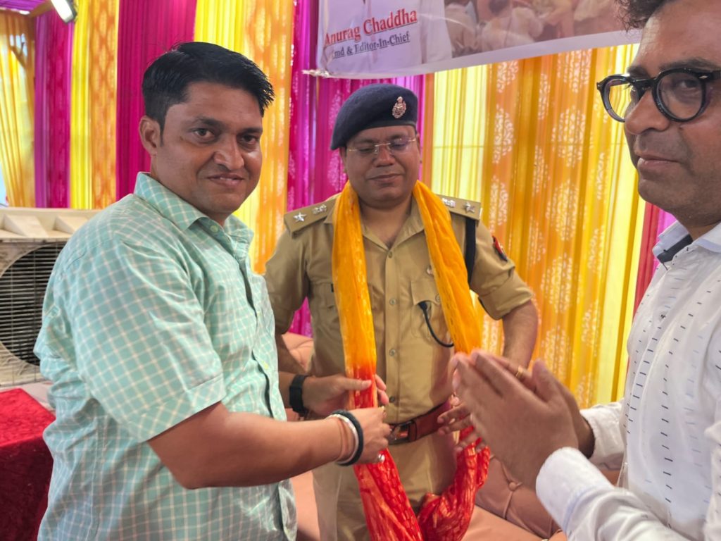 इस मौके पर प्रदेश सरकार में कैबिनेट मंत्री सुनील शर्मा, सांसद अतुल गर्ग, विधायक नंद किशोर गुर्जर, पुलिस कमिश्नर जे रविंद्र गौड, जिलाधिकारी दीपक मीणा, नगर आयुक्त विक्रमादित्य सिंह मलिक, एडिशनल सीपी आलोक प्रियदर्शी, डीसीपी सिटी धवल जायसवाल, भाजपा महानगर अध्यक्ष मयंक गोयल, दैनिक अथाह के संपादक अशोक ओझा, वरिष्ठ पत्रकार शक्ति सिंह का अनुराग चड्ढा ने पटका पहनाकर स्वागत किया। इस मौके पर रोहित सिंह, रोहित, राजीव मिश्रा, नितिन, अनुज चौधरी, दीपक चौधरी, प्रवीण बत्रा, अनुराग गर्ग, राजेश शर्मा समेत बड़ी संख्या में लोग उपस्थित थे।