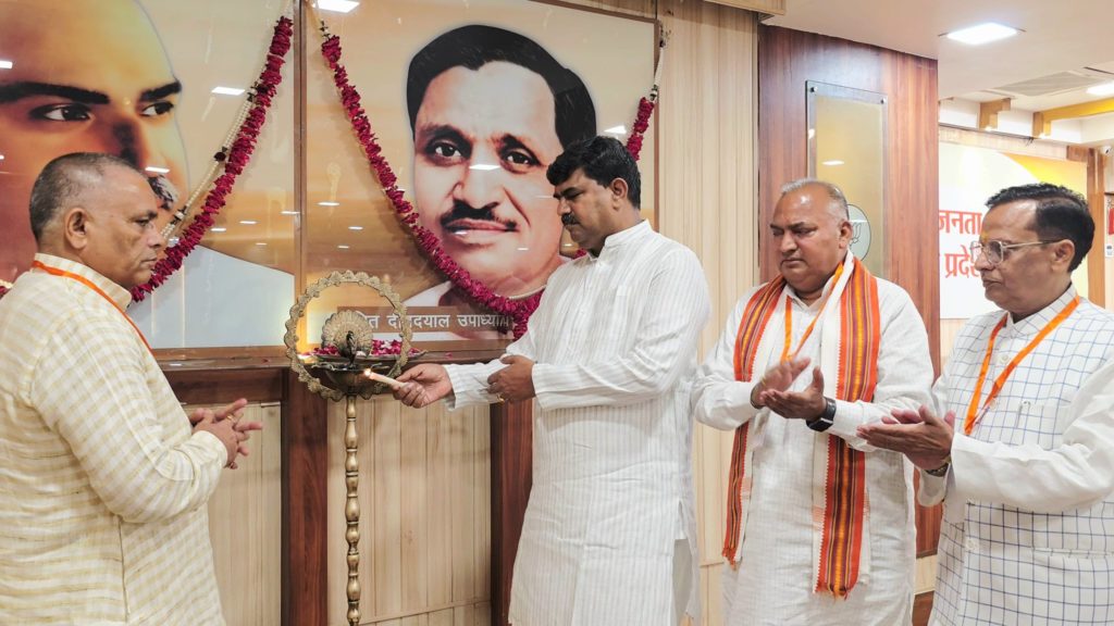 लखनऊ। भारतीय जनता पार्टी व्यापार प्रकोष्ठ उत्तर प्रदेश की बैठक प्रदेश कार्यालय पर सम्पन्न हुई। बैठक में मुख्य अतिथि भारतीय जनता पार्टी प्रदेश महामंत्री (संगठन) धर्मपाल सिंह रहे। बैठक की अध्यक्षता प्रकोष्ठों के प्रदेश प्रभारी ओम प्रकाश वास्तव ने की। बैठक का संचालन भाजपा व्यापार प्रकोष्ठ के प्रदेश संयोजक विनीत अग्रवाल शारदा ने किया। मुख्यअतिथि धर्मपाल सिंह का स्वागत प्रतीक चिन्ह एवं अंगवस्त्र पहनाकर व्यापार प्रकोष्ठ के प्रदेश संयोजक विनीत अग्रवाल शारदा ने किया।
