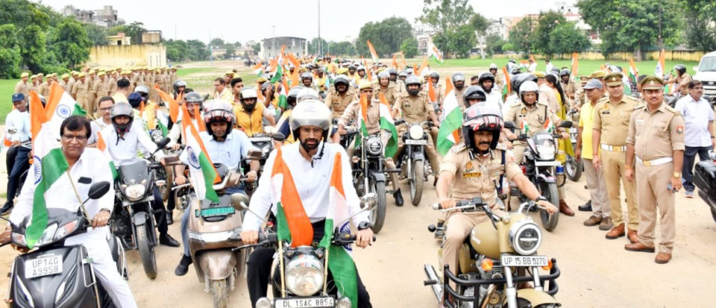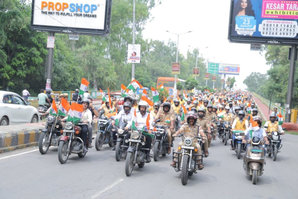 गाजियाबाद। शासनादेश के तहत जिला प्रशासन व सिविल डिफेंस द्वारा 02 अगस्त से 15 अगस्त के अन्तर्गत हर घर तिरंगा यात्रा के मद्देनजर ”बाईक एवं स्कूटी तिरंगा रैली” का आयोजन किया जा रहा है। स्थानीय सांसद अतुल गर्ग ने मुख्य विकास अधिकारी अभिनव गोपाल, एड.सीपी आलोक प्रियदर्शी, एडीएम सिटी विकास कश्यप, एड.डीपीसी सच्चिदानंद, जिला सूचना अधिकारी योगेन्द्र प्रताप सिंह, चीफ वार्डन सिविल डिफेंस ललित जायसवाल, सांसद प्रतिनिधि राजेन्द्र मित्तल, अनिल अग्रवाल, गुलाम नवी सहित अन्य गणमान्यों की उपस्थिति में ”बाईक एवं स्कूटी तिरंगा रैली” को हरी झण्डी दिखाकर रवाना किया।