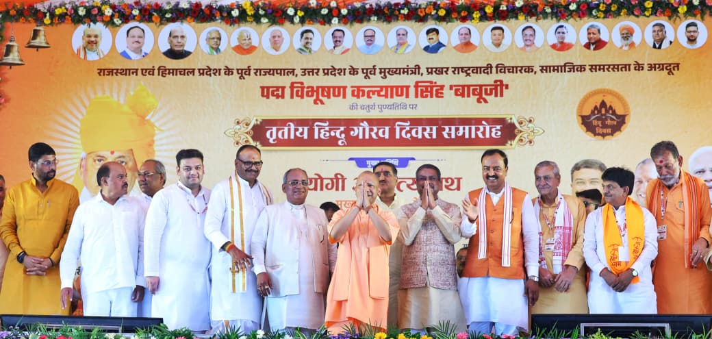 मुख्यमंत्री योगी आदित्यनाथ ने कहा कि बाबूजी की स्मृतियां अलीगढ़ की ह्यताला नगरीह्ण को भी प्रेरित करती हैं। यहां के स्थानीय उद्योग और उद्यमिता आत्मनिर्भर भारत के संकल्प को साकार करने का आधार बन रहे हैं। उन्होंने कहा कि यदि हम बाबूजी की शिक्षाओं और आदर्शों को जीवन में अपनाएं, तो न केवल उत्तर प्रदेश बल्कि पूरा भारत नई ऊंचाइयों को छूएगा। सीएम योगी ने कहा कि कल्याण सिंह जी ने जो आदर्श और विरासत सौंपी है, वह पूरे समाज के लिए प्रेरणा है। उनका जीवन हमें राष्ट्रीयता, जनसेवा और समर्पण का संदेश देता है। आज हिंदू गौरव दिवस पर हम सबका संकल्प है कि बाबूजी के मार्ग पर चलकर उत्तर प्रदेश को भारत की अर्थव्यवस्था का अग्रणी राज्य बनाएंगें।