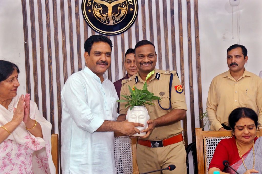 गाजियाबाद। राज्य मंत्री स्वतन्त्र प्रभार एवं प्रभारी मंत्री गाजियाबाद असीम अरुण द्वारा डाबर औद्योगिक इकाई गाजियाबाद भ्रमण के दौरान डाबर कॉन्फ्रेंस हॉल में उद्यमी जन संवाद कार्यक्रम में प्रतिभाग कर उद्यमियों की समस्याएं सुन उनके निराकरण का आश्वासन दिया गया। प्रभारी मंत्री की अध्यक्षता में दुर्गावती देवी सभागार, विकास भवन गाजियाबाद में जनप्रतिनिधियों एवं अधिकारियों के साथ समीक्षा बैठक आहूत हुई। बैठक के शुभारम्भ के दौरान पुलिस कमीश्नर जे. रविन्द्र गौड, जिलाधिकारी रविंद्र कुमार मांदड़, एडिशनल सीपी कल्पना सक्सेना, डीसीपी सिटी धवल जायसवाल, जीडीए उपाध्यक्ष अतुल वत्स, नगरआयुक्त विक्रमादित्य सिंह मलिक द्वारा प्रभारी मंत्री असीम अरूण सहित जनप्रतिनिधियों जिलापंचायत अध्यक्ष ममता त्यागी, महापौर सुनीता दयाल, विधायक सदर संजीव शर्मा, महानगर अध्यक्ष मयंक गोयल, जिलाध्यक्ष चैनपाल सिंह को पौधा भेंटकर स्वागत किया गया।