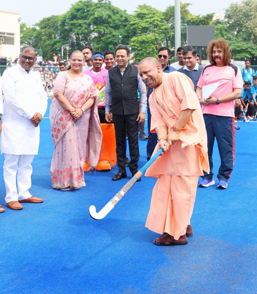 सीएम योगी ने हॉकी स्टिक उठाई, शॉट लगाया और फिटनेस की शपथ दिलाई