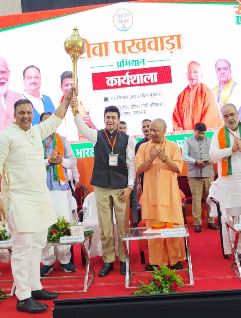 भारतीय जनता पार्टी युवा मोर्चा के राष्ट्रीय अध्यक्ष व अभियान के राष्ट्रीय सहसंयोजक तेजस्वी सूर्या ने मुख्यमंत्री योगी आदित्यनाथ की तारीफ करते हुए कहा कि मुख्यमंत्री योगी आदित्यनाथ देश के सबसे लोकप्रीय मुख्यमंत्री हैं। उन्होंने कहा कि वह ऐसे मुख्यमंत्री हैं जिनकी चर्चा 2 हजार किलोमीटर दूर बैंगलुरू में भी होती है। सूर्या ने उत्तर प्रदेश में मुख्यमंत्री योगी के कुशल मार्गदर्शन में जारी विकास कार्यों की तारीफ करते हुए आगामी पंचायत चुनावों में युवाओं को अधिक से अधिक मौका दिए जाने की भी अपील की। मुख्यमंत्री योगी आदित्यनाथ तथा भाजपा प्रदेश संगठन के नेतृत्व से अपील करते हुए उन्होंने कहा कि युवा मोर्चा के कार्यकर्ता खून भी देते हैं और पसीना भी। तेजस्वी सूर्या ने विजन 2047 का जिक्र करते हुए कहा कि प्रधानमंत्री नरेन्द्र मोदी ने देश में सांस्कृतिक परिवर्तन लाने का संकल्प लिया है। विकसित भारत की संकल्पना को साकार करने के साथ ही उन्होंने देश में स्वच्छता को बढ़ावा देने के लिए पीएम मोदी की प्रतिबद्धता का उल्लेख किया।