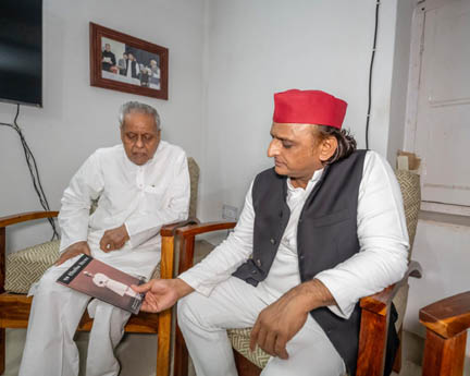 अखिलेश यादव सपा के राष्टÑीय सचिव एवं मुख्य प्रवक्ता राजेंद्र चौधरी के आवास पहुंचे