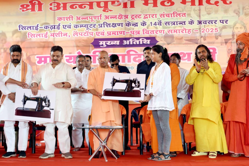 मुख्यमंत्री ने सोमवार को श्री अन्नपूर्णा ऋषिकुल ब्रह्मचर्याश्रम में लैपटॉप व सिलाई मशीन का वितरण किया। उन्होंने कुछ बच्चों को अपने हाथों से भी सम्मानित किया। सीएम योगी ने यहां पौधरोपण किया और गोशाला में गायों को चारा, गुड़ व फल खिलाया। सीएम ने बच्चों को शुभकामना देते हुए कहा कि दीपावली के पूर्व मिला यह उपहार मां अन्नपूर्णा की कृपा है। उन्होंने बच्चों को हिदायत भी दी कि कंप्यूटर सुविधा का माध्यम है तो भटकाव भी है। हमें सकारात्मक रूप से ज्ञान को प्राप्त करने की दिशा में आगे बढ़ना चाहिए, जो जीवन को उज्ज्वल बनाने में योगदान दे सके।