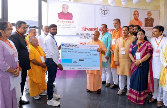 सीएम योगी ने नव निर्मित कन्वेंशन सेंटर का भी किया लोकार्पण अथाह संवाददाता झांसी। जनपद के दौरे पर पहुंचे उत्तर प्रदेश के मुख्यमंत्री योगी आदित्यनाथ ने गुरुवार को कन्वेंशन सेंटर में मुख्यमंत्री युवा उद्यमी विकास अभियान के लाभार्थियों को योजना के चेक प्रदान किए। इसके साथ ही मुख्यमंत्री ने विश्वकर्मा श्रम सम्मान योजना के अंतर्गत टूलकिट का वितरण किया। सीएम ने इस अवसर पर लाभार्थियों को प्रोत्साहित किया। इसी के साथ सीएम योगी आदित्यनाथ ने नव निर्मित कन्वेंशन सेंटर का भी लोकार्पण किया। मुख्यमंत्री युवा उद्यमी विकास अभियान योजना के अंतर्गत हृदयेश पाल को आइसक्रीम विनिर्माण के लिए, संतोष कुमार को टेंट हाउस के लिए, प्रतीक को फोटो फ्रेमिंग और पूजन सामग्री निर्माण के लिए, पवन गौहर को डीजे साउंड सिस्टम के लिए, रीना सोनी को ब्यूटी पार्लर के लिए और रोहित कुशवाहा को फ्लावर डेकोरेशन का काम शुरू करने के लिए मुख्यमंत्री योगी आदित्यनाथ ने अपने हाथों से चेक प्रदान किए। इसके अलावा विश्वकर्मा श्रम सम्मान योजना के लाभार्थियों को सीएम ने टूल किट प्रदान किया। सीएम योगी आदित्यनाथ ने खुशबू साहू, आशा देवी, ज्योति, मोनू श्रीवास, समित कुशवाहा और सोनिया कुशवाहा को योजना के अंतर्गत लाभार्थियों के व्यवसाय से संबंधित टूल किट प्रदान किया। इस मौके पर स्थानीय जन प्रतिनिधि और प्रशासनिक अधिकारियों के अलावा विभागीय अधिकारीगण मौजूद रहे।