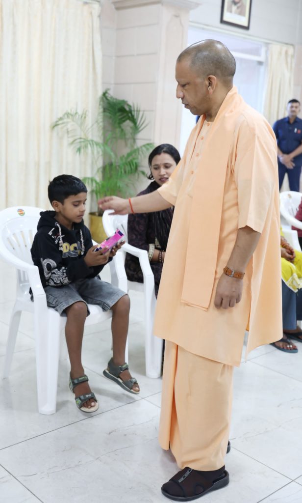 मुख्यमंत्री ने ‘जनता दर्शन’ में फरियादियों के साथ आए बच्चों का हालचाल जाना। नन्हे-मुन्नों के सिर पर हाथ फेर दुलार किया और अपनत्व का अहसास कराया। सीएम योगी ने सभी बच्चों को चॉकलेट-टॉफी दी। उन्होंने बच्चों से कहा कि खूब पढ़ो-जमकर खेलो और माता-पिता का नाम रोशन करो।