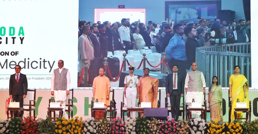 इस अवसर पर महामहिम राष्ट्रपति द्रौपदी मुर्मू, रक्षा मंत्री राजनाथ सिंह, प्रदेश के उपमुख्यमंत्री ब्रजेश पाठक, केंद्रीय स्वास्थ्य एवं परिवार कल्याण राज्य मंत्री अनुप्रिया पटेल, यशोदा मेडिसिटी के अध्यक्ष और एमडी डॉ. पीएन अरोड़ा, एमडी डॉ उपासना अरोड़ा, निदेशक शुभांग अरोड़ा उपस्थित रहे।