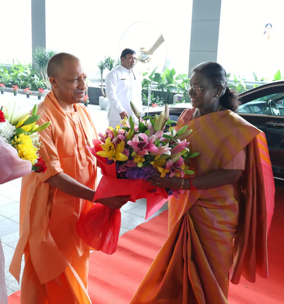मुख्यमंत्री ने राष्ट्रपति द्रौपदी मुर्मू का प्रदेश सरकार की ओर से स्वागत करते हुए कहा कि राष्ट्रपति जी का मार्गदर्शन हम सबके लिए एक प्रेरणा है। उन्होंने कहा कि राष्ट्रपति जी ने शून्य से शिखर तक की यात्रा कैसे की जाती है, यह अपने विराट व्यक्तित्व और कृतित्व से देश की 140 करोड़ आबादी, विशेषकर आधी आबादी के सामने प्रेरणा का स्रोत बनकर दिखाया है। मुख्यमंत्री ने कहा कि छठ जैसे पर्व की पूर्व संध्या पर आयोजित इस पावन अवसर पर वे राष्ट्रपति जी का अभिनंदन करते हैं। उन्होंने रक्षा मंत्री राजनाथ सिंह का भी स्वागत करते हुए कहा कि वे उत्तर प्रदेश के विकास से संबंधित हर मुद्दे पर सहज भाव से मार्गदर्शन प्रदान करते हैं।