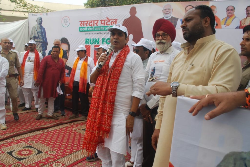 सांसद अतुल गर्ग ने कहा कि भाजपा सरदार पटेल के आदर्शों को आत्मनिर्भर भारत अभियान से आगे बढ़ा रही है।
