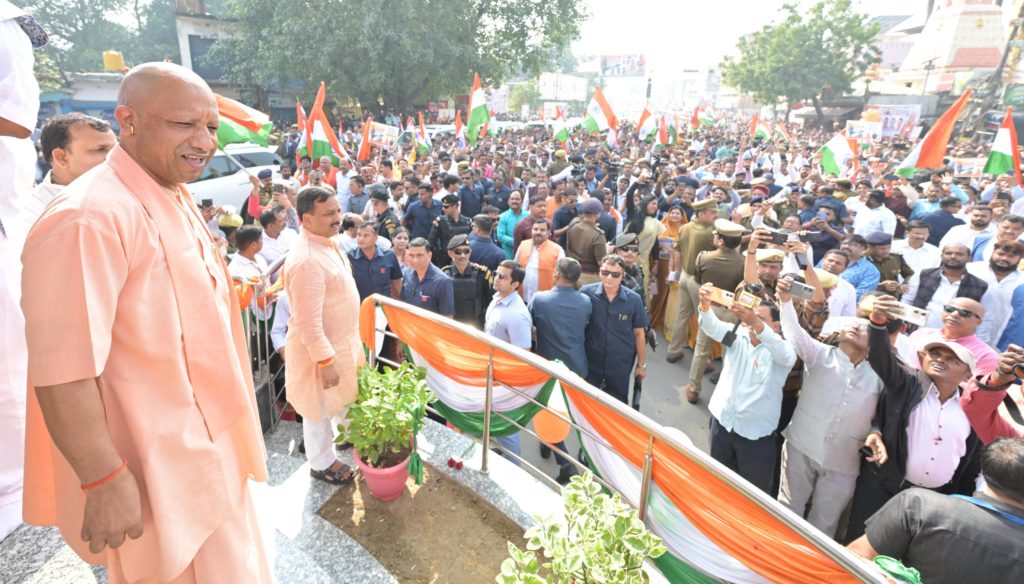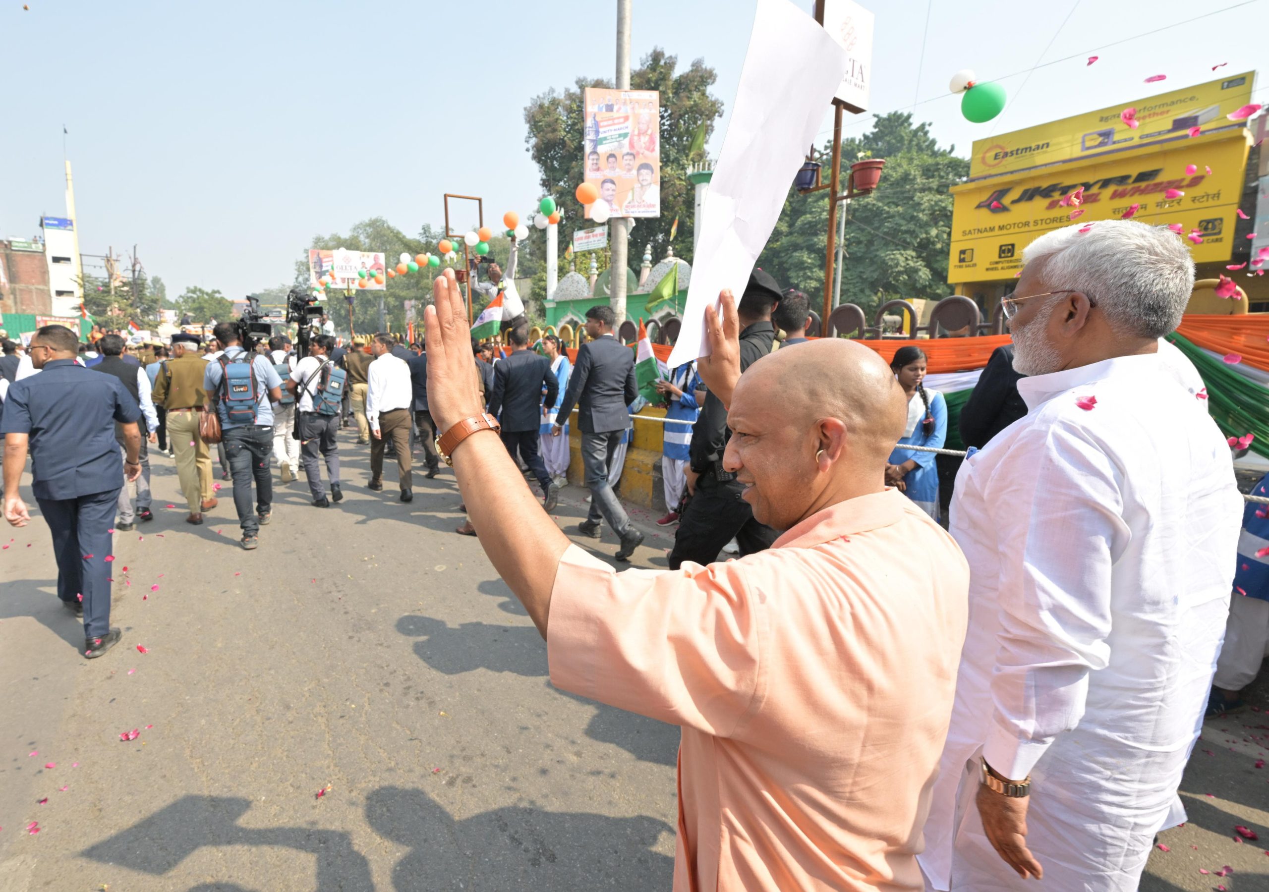 मुख्यमंत्री योगी आदित्यनाथ की अगुवाई में यह दृश्य लौह पुरुष सरदार वल्लभ भाई पटेल की 150वीं जयंती समारोह के उपलक्ष्य में निकाली गई एकता यात्रा के दौरान देखने को मिला। मुख्यमंत्री ने अपने गृह विधानसभा क्षेत्र गोरखपुर शहर से इस ऐतिहासिक यात्रा का शुभारंभ किया। नगर निगम परिसर से गीता वाटिका के पास स्थित विश्वंभर पाठक पार्क तक निकली इस यात्रा में एकता और राष्ट्रीय गर्व की भावना पूरी तरह उमड़ पड़ी। मुख्यमंत्री योगी गोलघर काली मंदिर के पास सरदार पटेल चौराहे तक स्वयं पदयात्रा में भी सम्मिलित हुए।