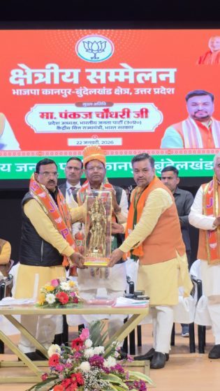 पंकज चौधरी ने कानपुर बुंदेलखंड क्षेत्रीय बैठक को संबोधित करते हुए कहा कि आज बहुत ही पवित्र दिन है, क्योंकि आज ही के दिन दो वर्ष पूर्व 2024 में अयोध्या में हमारे इष्ट देव भगवान राम के मंदिर में प्राण प्रतिष्ठा हुयी थी। उन्होंने कहा की मैं अपनी ओर से और आप सभी की ओर से उन सभी पवित्र आत्माओं को नमन करता हूँ जिनके संघर्षों से ही अयोध्या में हमारे आराध्य भगवान राम का मंदिर निर्माण का सपना साकार हुआ। उन्होंने कहा कि उत्तर प्रदेश की सबसे पुरानी औद्योगिक नगरी कानपुर में आप सबके बीच आकर मैं भावविभोर हूँ। कानपुर का अपना यूनीक कल्चर है और आज भी कानपुर ने इसी यूनीकनेस से जल, थल और नभ से स्वागत किया है।