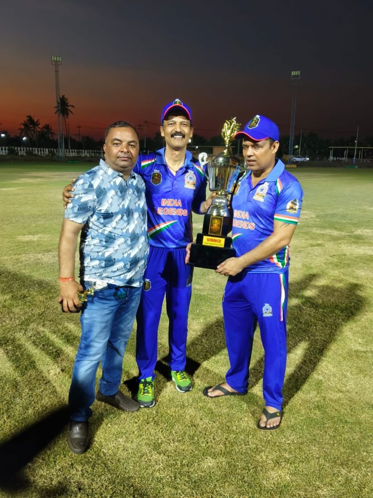 नयी दिल्ली/ थाईलैंड। भारतीय वेटरन टीम ने शानदार प्रदर्शन करते हुए बांग्लादेश को चार विकेट से हराकर ‘एशिया लीजेंड कप थाईलैंड’ पर कब्जा कर लिया। इस जीत पर बीवीसीआआई के अध्यक्ष एवं ‘एशिया लीजेंड कप थाईलैंड’ के अध्यक्ष प्रवीण त्यागी एवं सचिव तथा बीवीसीआई उपाध्यक्ष रविंद्र त्यागी ने खुशी व्यक्त करते हुए टीम को बधाई दी।
