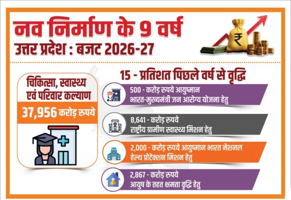 *फार्मा एवं मेडिकल डिवाइस क्षेत्र में शोध को बढ़ावा देने को आवंटित किये 1500 लाख*योगी सरकार ने असाध्य और गंभीर रोगों से पीड़ित मरीजों को राहत देने के उद्देश्य से निःशुल्क चिकित्सा सुविधा के लिए 130 करोड़ रुपये की व्यवस्था भी बजट में की है। मुख्यमंत्री योगी आदित्यनाथ की यह पहल समाज के गरीब और जरूरतमंद वर्ग के लिए जीवनरक्षक साबित हो रही है, क्योंकि इससे महंगे इलाज का बोझ कम होगा। योगी सरकार ने बजट में फार्मास्युटिकल एवं मेडिकल डिवाइस क्षेत्र में शोध को बढ़ावा देने के लिए विशेष योजनाएं प्रस्तावित की हैं। प्रदेश के बड़े चिकित्सा संस्थानों के साथ उद्योग साझेदारी के माध्यम से वैक्सीन, औषधियों और विभिन्न रोगों के निदान से जुड़े उपकरणों पर शोध के लिए उच्चकोटि की व्यवस्था की जाएगी। इसके लिए वित्तीय वर्ष 2026-27 में 500 लाख रुपये तथा एक अन्य प्रोत्साहन योजना के तहत 1,000 लाख रुपये की व्यवस्था प्रस्तावित है। इसके अलावा केंद्रीय योजनाओं के तहत स्थापित फेज-1, 2 और 3 के 27 चिकित्सा महाविद्यालयों में अध्ययनरत छात्र-छात्राओं के लिए छात्रावास सुविधाओं के विस्तार के लिए 5,000 लाख रुपये का प्रावधान किया गया है। इन्हीं मेडिकल कॉलेजों से संबद्ध 300 बेड के अस्पतालों के निर्माण के लिए भी वित्तीय वर्ष 2026-27 में 5,000 लाख रुपये की व्यवस्था की गई है।