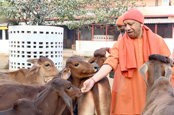 गोरखनाथ मंदिर प्रवास के दौरान शनिवार सुबह मुख्यमंत्री योगी आदित्यनाथ की दिनचर्या परंपरागत रही। गुरु गोरखनाथ का दर्शन पूजन करने तथा अपने गुरुदेव ब्रह्मलीन महंत अवेद्यनाथ की प्रतिमा समक्ष शीश झुकाने के बाद वह मंदिर परिसर के भ्रमण पर निकले। मंदिर की गोशाला में पहुंचकर उन्होंने गोसेवा की। गायों और गोवंश को स्नेहिल भाव से अपने हाथों से गुड़ खिलाया।