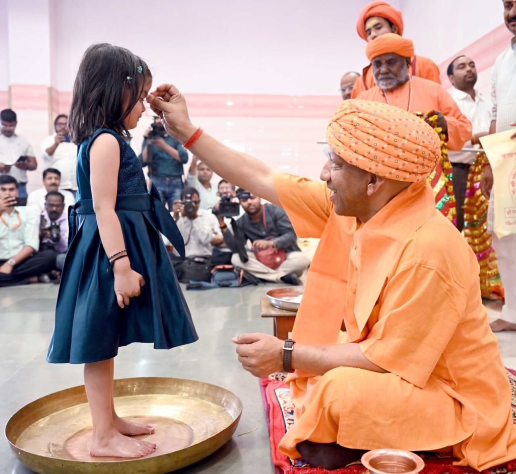 वासंतिक नवरात्रि की नवमी तिथि पर नौ दुर्गा स्वरूपा कन्याओं के पांव पखारे सीएम योगी ने